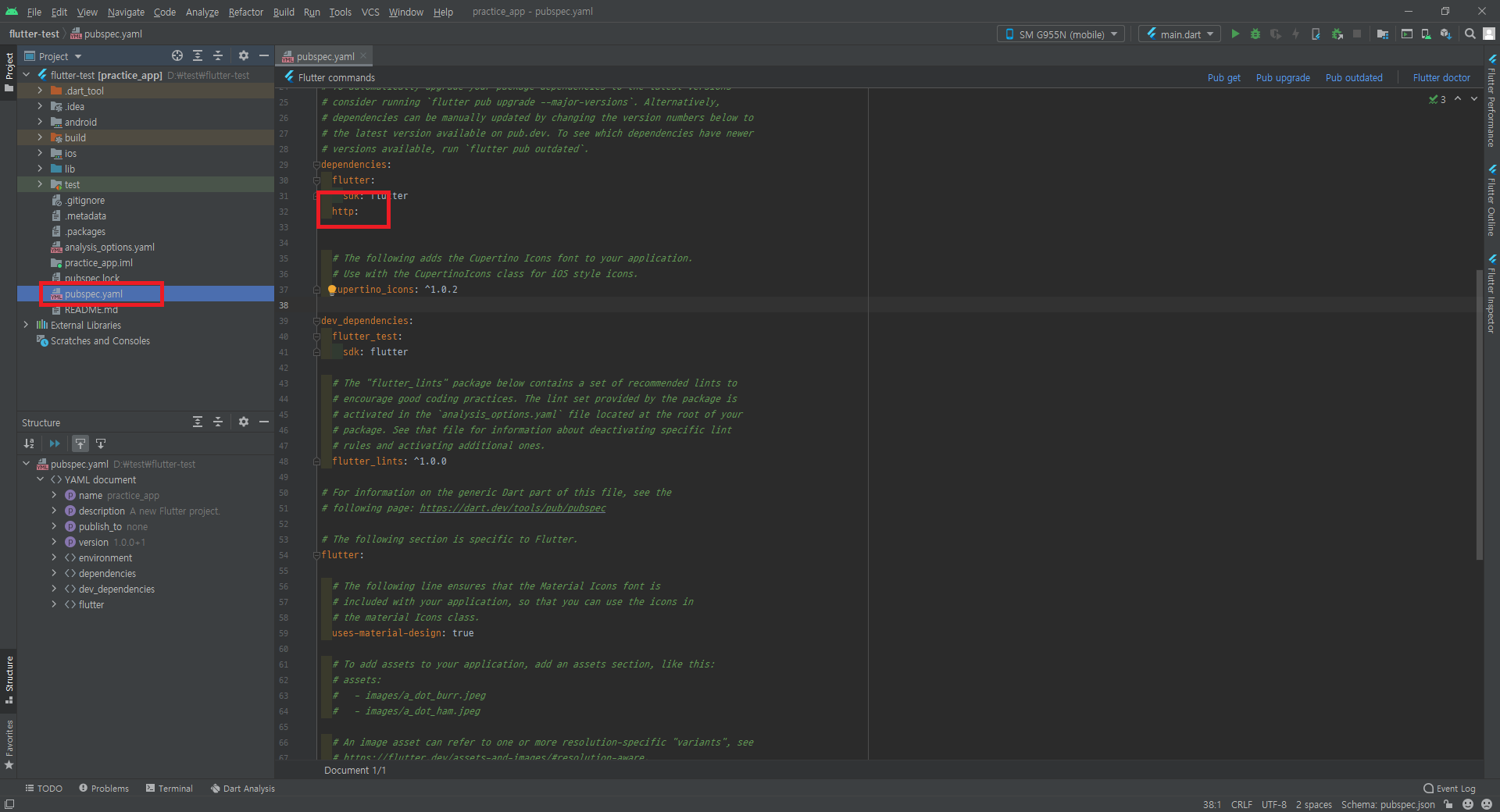 pubspec.yaml 파일에 dependencies 부분에 http: 라고 적어준다.